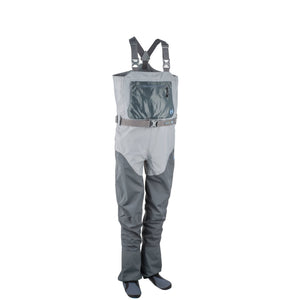 The upper wader incorporates 3-layer shell fabric for added breathability, and features a Durable Water repellent (DWR) coating to shed water from your wader. The upper mesh pocket includes a large capacity YKK® zippered storage pocket. For cold days we lined the hand warmer pocket with micro-fleece to soothe numb fingers.
