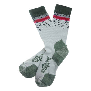 A new take on RepYourWater's classic, original Trout Skin socks. Lighter weight but still featuring under-foot cushioning, these new Trout Socks will take you anywhere you need to go. This extra-light and cushioned crew sock is great for formal events like weddings, hiking, biking, the office or really anything in between. Made with fellow Colorado-company Point6 out of Steamboat Springs.