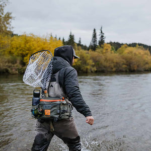 Behind a coated YKK AquaGuard® water-resistant zipper, you'll find a large storage compartment featuring a removable divider, with 8 liters of storage space for all the fly boxes and accessories you'll need. Integrated water bottle holders, exterior accessory attachment points, a net slot, and hip belt stash pockets round out a platform that allows you to tackle whatever Mother Nature throws your way.