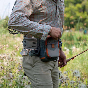 Despite the low-profile design, up to four of your favorite fly boxes will stow away with ease, leaving plenty of room for accessories. The Canyon Creek also represents a solution for anglers looking to increase the carrying capacity of their existing Fishpond fishing systems. The chest pack can be detached from the back and used with Fishpond's Switchback Pro Wading Systems, South Fork Wading Belt, Backpacks, and more.