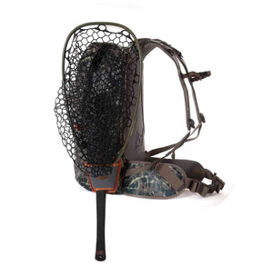 Coated webbing daisy chain, d-ring, and four-way attachments on back panel for various accessories including the Fishpond Net Holster