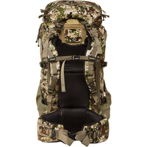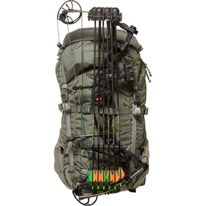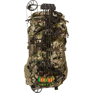 A versatile hunting backpack for multi-day treks into the wilds, featuring both a large main packsack and a removable lid with zippered pockets.