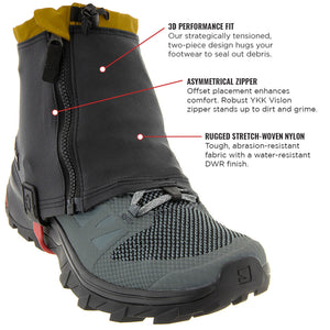 Easy to Use: An asymmetrical YKK VISLON® side zipper closure makes the gaiter easy to put on and take off without removing your shoes. It also features an elasticized top drawcord with a toggle lock and an integrated lace hook for a secure seal.