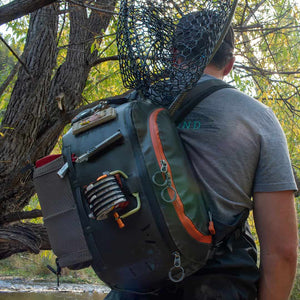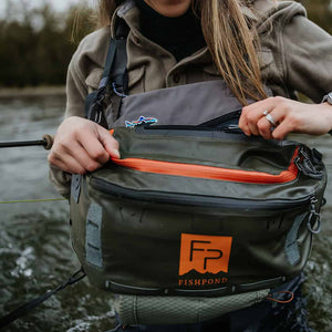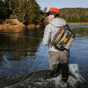 Inside the pack, a large main compartment with a removable divider allows for efficient organization of your boxes and other gear. An integrated waterproof pocket featuring the TRU Zip zipper ensures your phone, wallet, keys, and other essentials stay completely dry. For longer days, the included cross-body strap provides added support and stability. With an ambidextrous configuration and a customizable layout, gear up with a sling pack that seamlessly blends water resistance with a rich feature set.