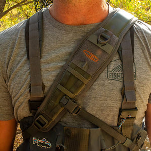 An ambidextrous symmetrical design and adjustable padded shoulder strap cater to left and right-handed casting configurations, ensuring all-day comfort for any angler. Convenience is key, and the Stormshadow Sling Pack delivers, with net slots, a front access pocket, and large die-cut hypalon patches for attaching a wide range of compatible accessories.