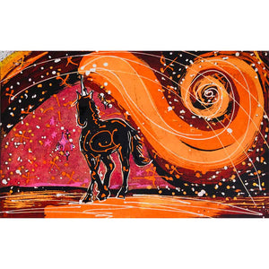 Looking for a hat that's as unique and magical as your child? Look no further than the Abby Paffrath unicorn youth trucker hat, featuring stunning Batik artwork in vibrant pink, yellow, and orange colors!