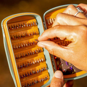These super-tough micro fly boxes will keep a full complement of flies safe and dry. This perfectly sized fly box seems to find its way into our chest pocket often, especially when we hit the water for a short time for after-work sessions. The Small Pescador features room for up to 143 flies, Tacky's signature waterproof gasket, and a 100 percent recycled plastic outer shell.